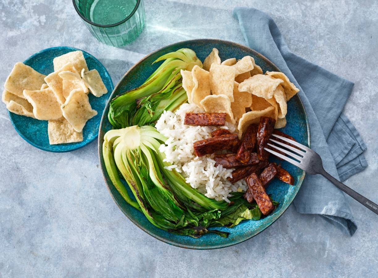 Rijst met paksoi en sticky tempeh van Hugo Kennis