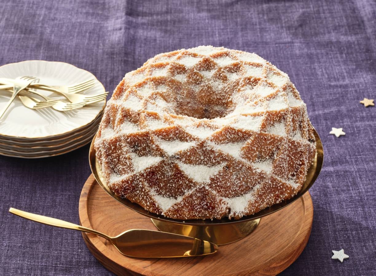 Kokos, witte chocolade en frambozen komen samen in deze kerstige kokostulband. Geef 'm een feestelijke touch met zilveren glitterspray en dit gebak steelt de show.