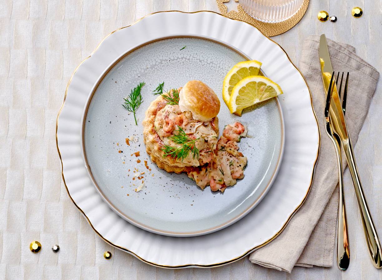 Het vettige van de roomboter, het krokante van het bladerdeegbakje, de dikke saus van de vis. Dat hele palet is een heelijke combinatie. Eet 'm lauwwarm.