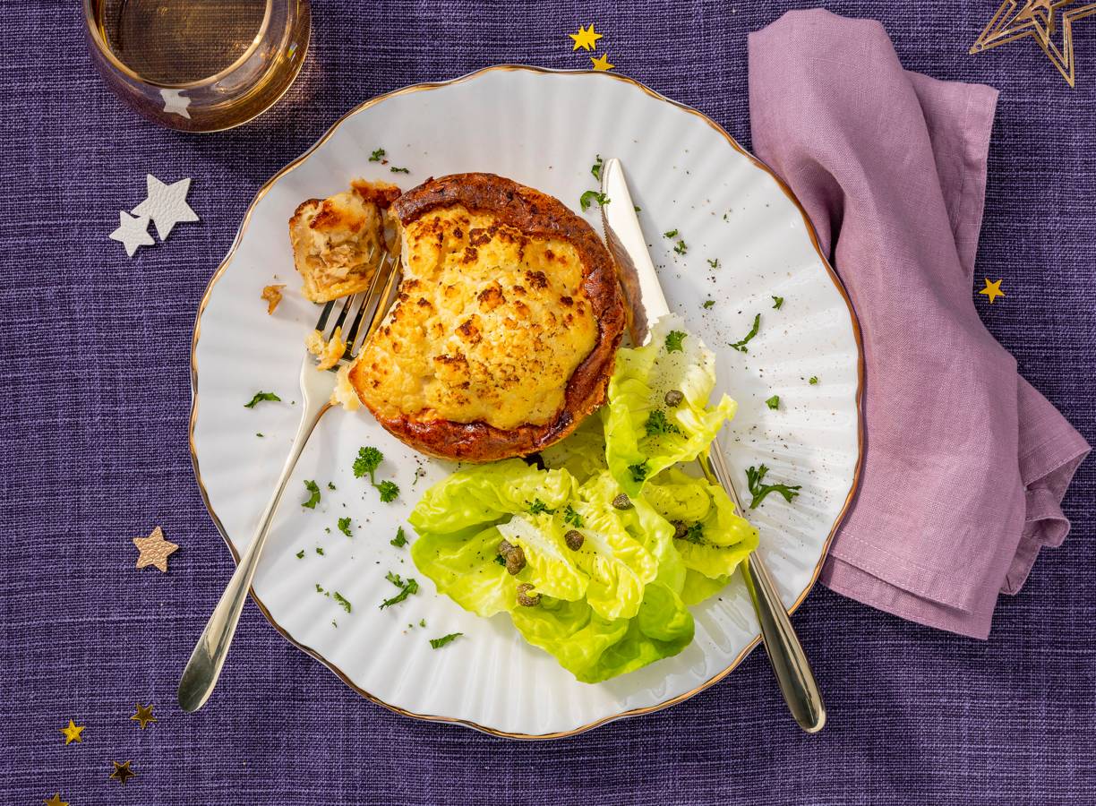 Bloemkool met kaas is een beproefde combi, maar combineer je dit met gekarameliseerde ui en kruidige komijn, dan weet je: dit is een succesnummer! Staat dit mini-bloemkooltaartje met kaas op het menu van jouw (kerst)diner?