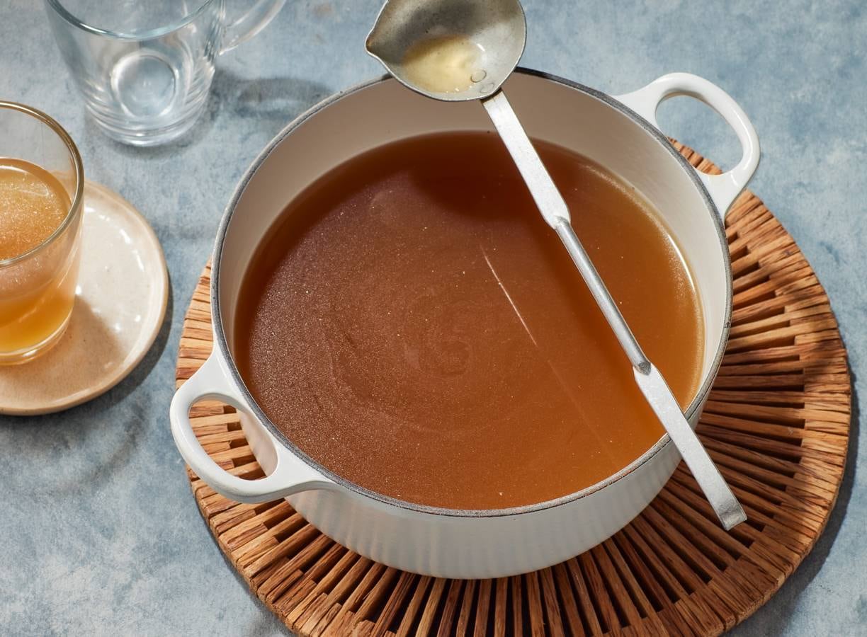 Bone broth, of bottenbouillon, is een populair gezondheidsdrankje. Je kan de bouillon tot 12 uur laten trekken om de meeste collageen uit de botten te trekken. Vries de bouillon in om er langer van te kunnen genieten.