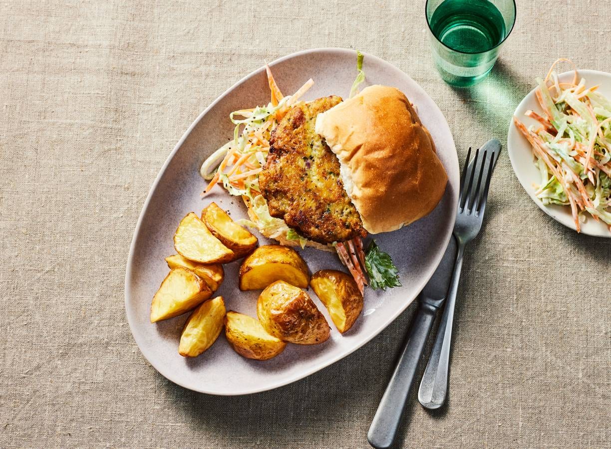 Voor dit broodje tonijnburger maak je de burgers helemaal zelf met tonijn uit blik en kikkererwten: goedkoop én lekker voedzaam! Maak de maaltijd compleet met gebakken aardappeltjes en een frisse wortelsalade.