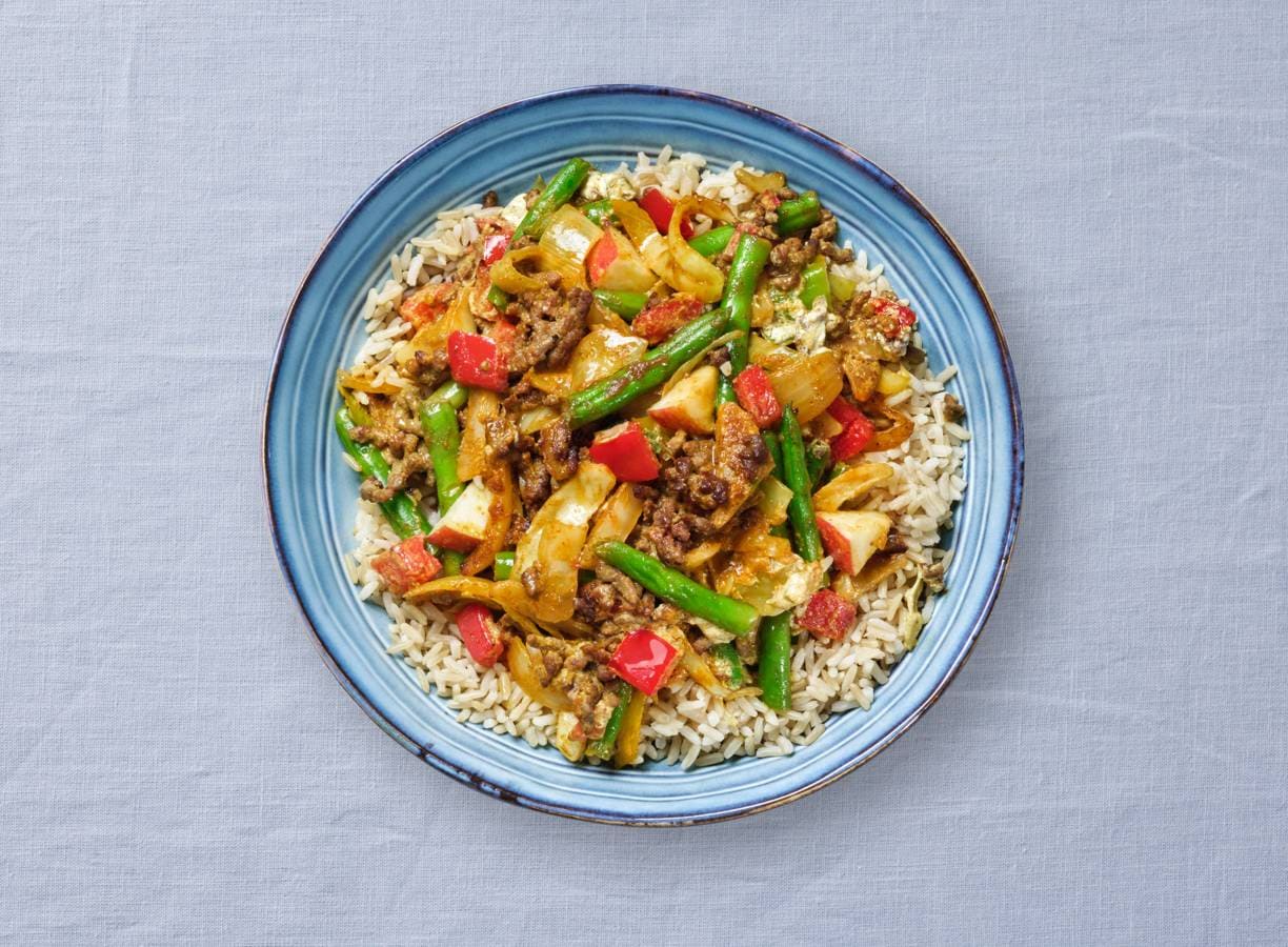 Een smakelijk avondmaal op tafel zetten doe je al lekker makkelijk met dit handige verspakket! Deze kruidige ovenschotel -geïnspireerd door bobotie- maak je met gehakt, groente en een handige kruidenmix.
