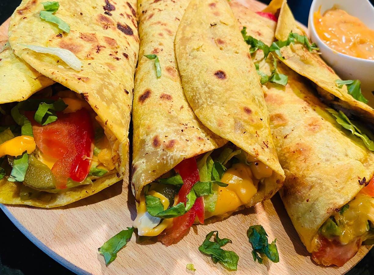 Koekenpan verhitten en lichtelijk met olie besmeren, bak de 1 voor 1 de RotiChoti aan de vleeszijde circa 4 minuten. Keer om, leg de Cheddar cheese erop; bak de RotiChoti tot de Cheddar cheese gesmolten is en haal het daarna uit de pan.