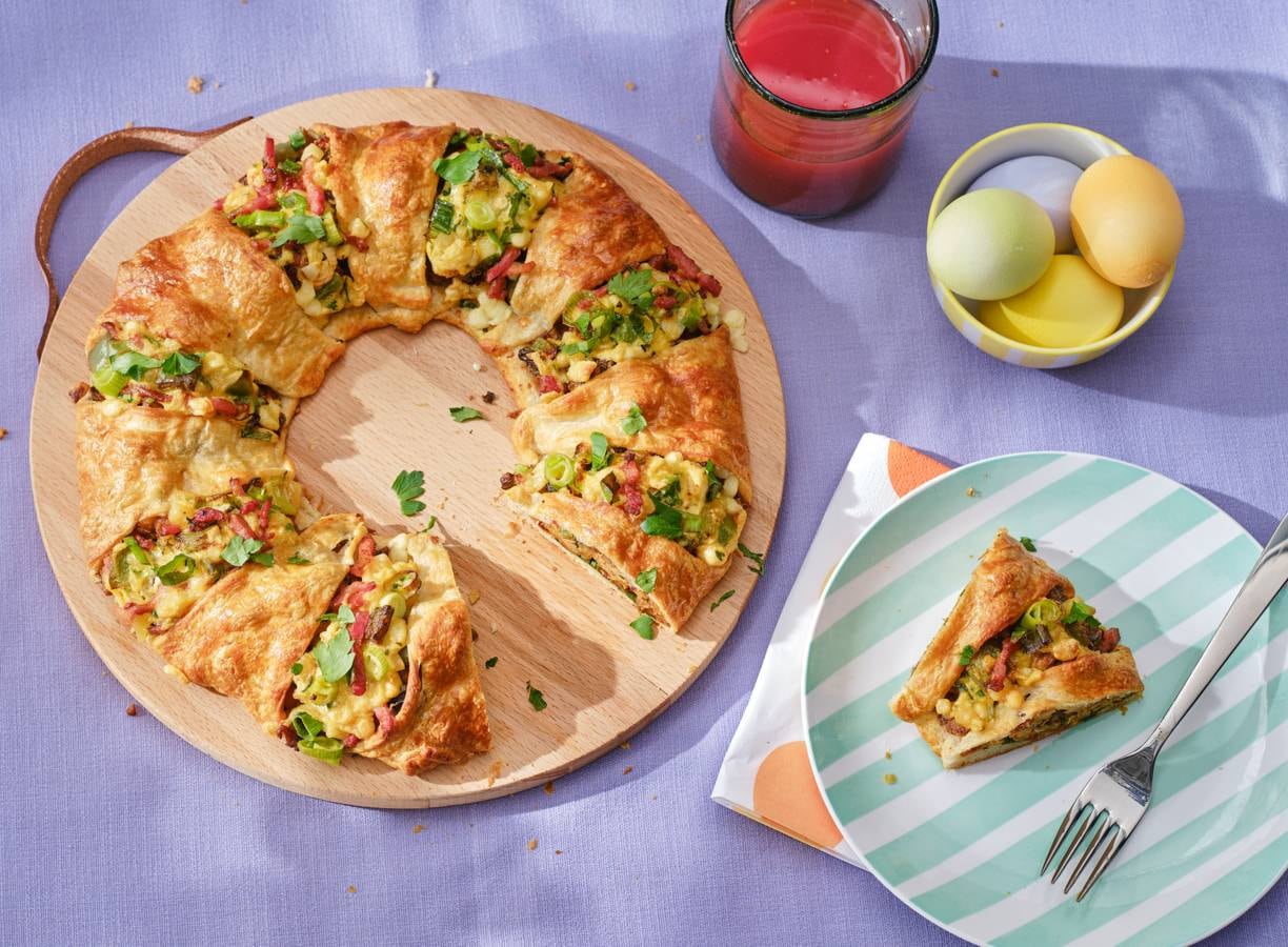 Deze hartige paaskrans steelt straks de show op je paasbrunch. En het geheim? Het handige verspakket van AH. Daar zit het grootste deel al afgemeten en wel in. Zelf nog ei en spekjes toevoegen en voila: je hebt een showstopper gemaakt.