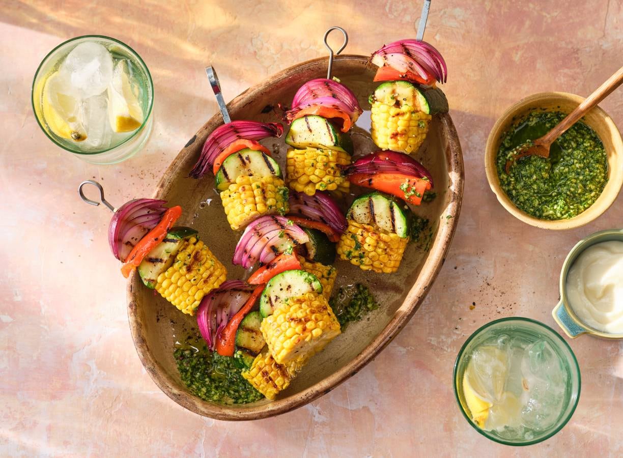 Dol op groente van de BBQ? Dan heb je vast en zeker deze groentespiezen al in de smiezen! Lekker met maïs, courgette en paprika.