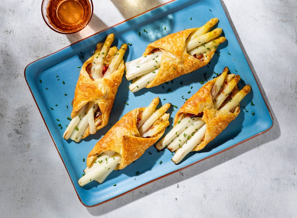 Deze asperges in bladerdeeg wil je vaker serveren. Extra lekker doordat je de naast de asperges de flapjes maakt met ham, crème fraîche en Parmigiano Reggiano.