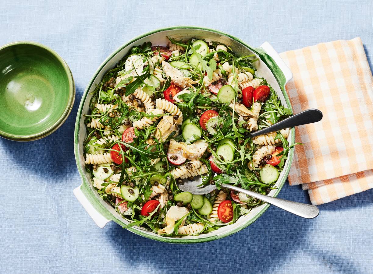 Maak je BBQ compleet met deze pastasalade. Een combinatie van artisjok, komkommer, cherrytomaat en een dressing van tonijn. Genieten!
