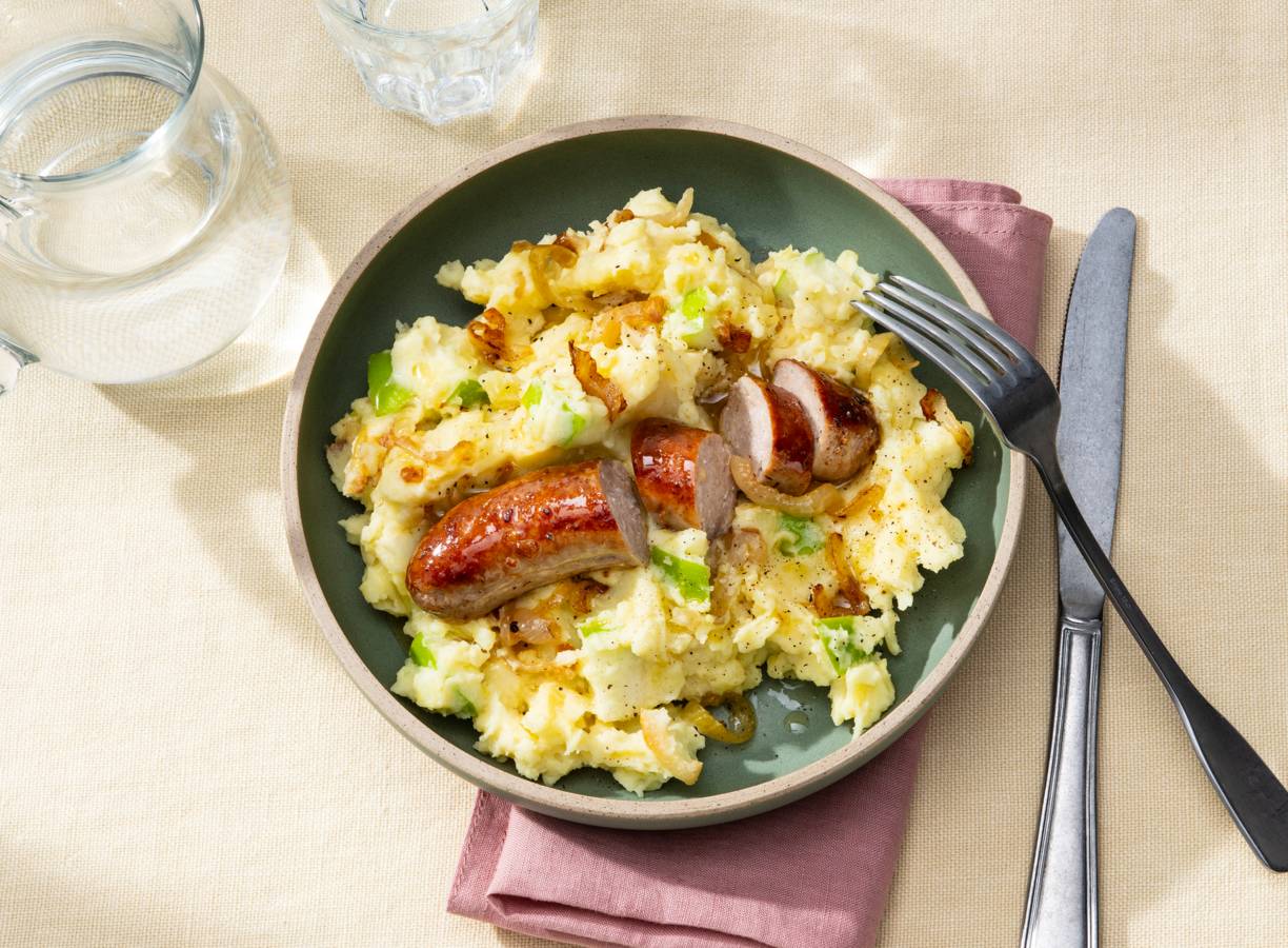 - variatietipVervang de helft van de aardappelen door 500 g knolselderij. Schil en snijd de knolselderij in blokjes en kook met de aardappelen gaar.