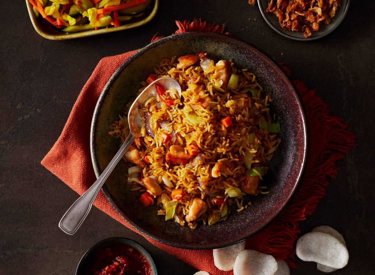 Koken met Conimex: dit recept is de perfecte basis voor een heerlijke nasi goreng. Tip: nog wat groenten over in huis? Voeg deze toe aan de nasi goreng.