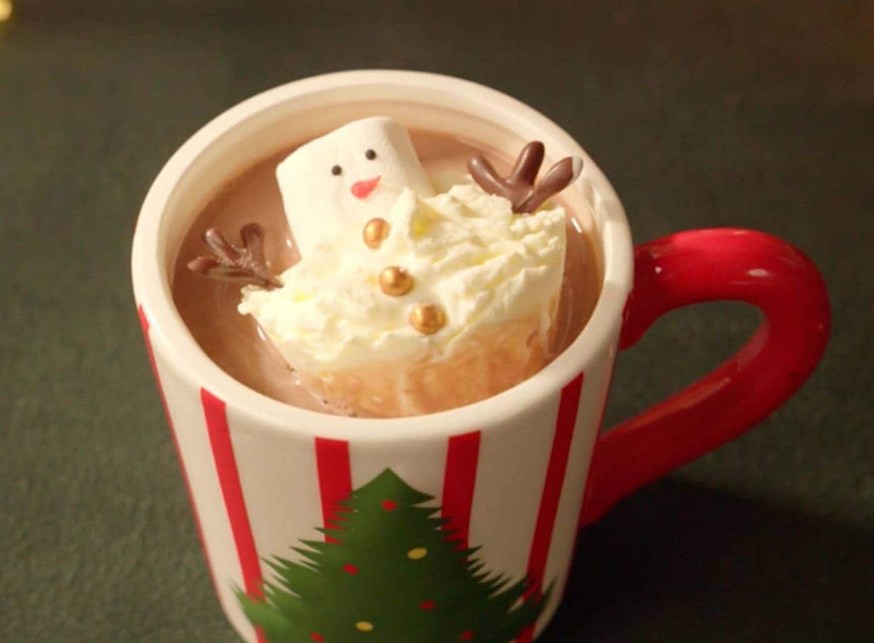 Zo lief dat je ervan smelt! Maak met kerst een winterwonderland van je chocolademelk met deze smeltende glitter-sneeuwpopjes van slagroom en marshmallows.