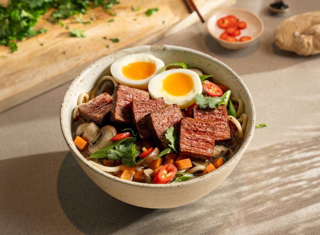 Ramen met plantaardige biefstuk van Redefine Meat (advertentie)