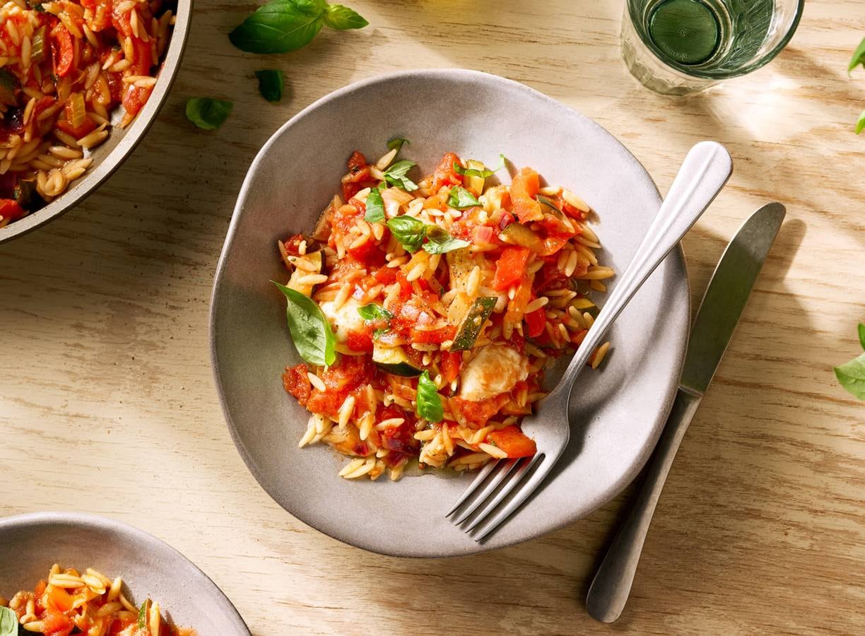 Koken met Maggi: Snelle orzo vol smaak en groenten. Met een Italiaanse bouillon maak je het gerecht onweerstaanbaar lekker.