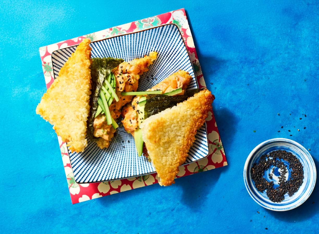 Jezelf verwennen met de lunch? Ga voor deze crispy sushi sandwich! Hij heeft het allemaal: crunch, pit en smaak. Met spicy zalm en kimchi is 'ie echt onweerstaanbaar!