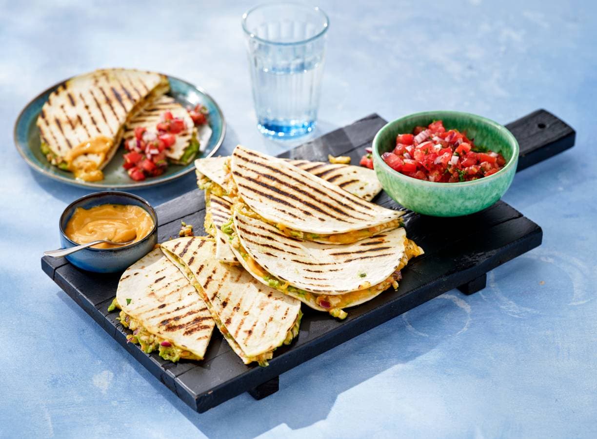 Quesadilla's van de BBQ? Tuurlijk! Ze krijgen door de rook en hitte een extraatje in smaak. Nog een extra: de pittige mayo in de vulling.