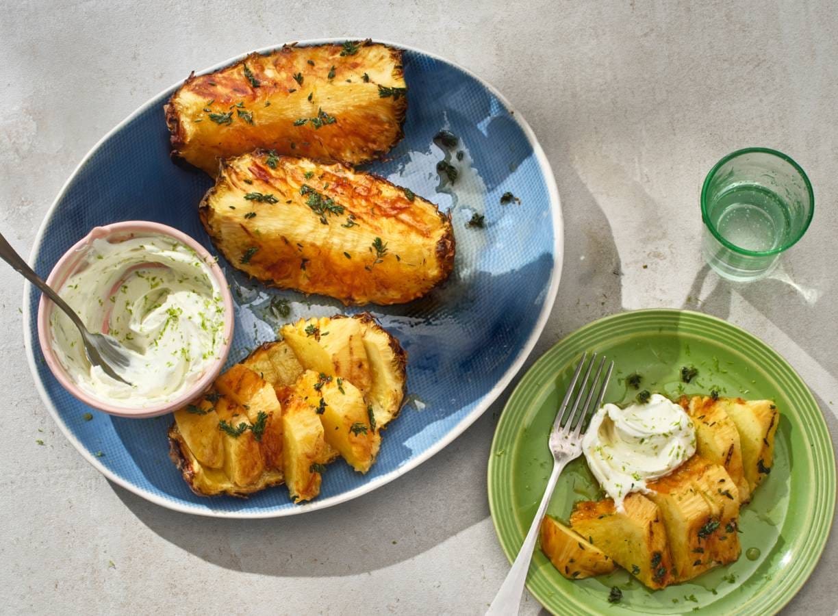 Na een zwoele BBQ-zomeravond is dit friszoete toetje van de BBQ alles wat je wil. De gegrilde ananas gaat perfect samen met de frisse crème fraîche met limoen, maar je kan deze ook vervangen door (slagroom)ijs!