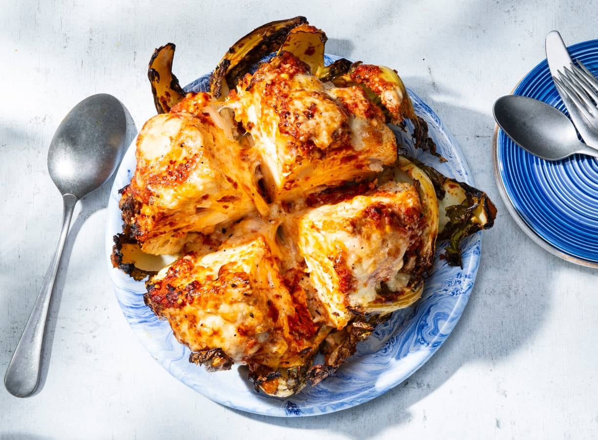 Blaas alle vega's (en niet-vega's) omver met deze bloemkool van de BBQ! Lekker met een kruidige saus, knapperig laagje parmezaan en romige whipped mozzarella on top!