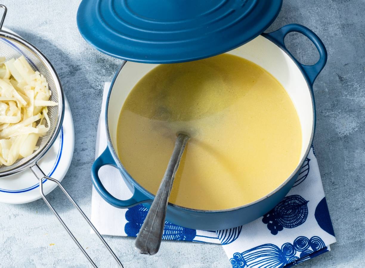 Gooi die aspergekontjes en -schillen niet weg maar maak er aspergebouillon mee. Een lekkere basis voor een soep.