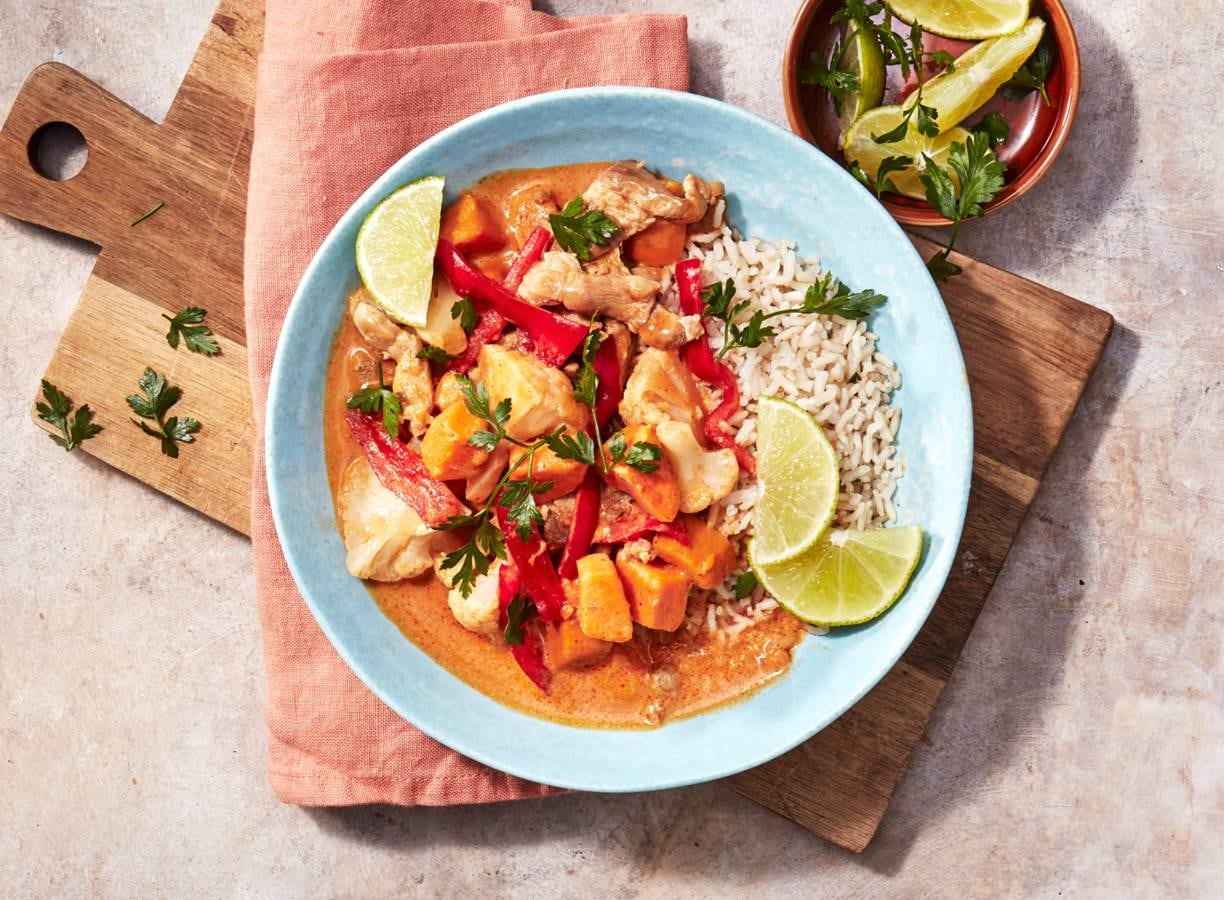vegatip:Vervang de kip door vegetarische kipstukjes. Let op: het gerecht is dan niet meer gluten- en lactosevrij.