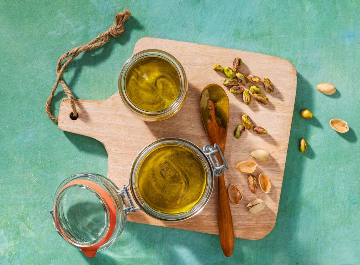 Pistachepasta is multi-inzetbaar: lekker op brood en croissants, in een ijskoffie, in tiramisu of crème brûlée... Het is een potje magie! Deze zelfgemaakte pistachepasta is goed voor een potje van 350 gram.