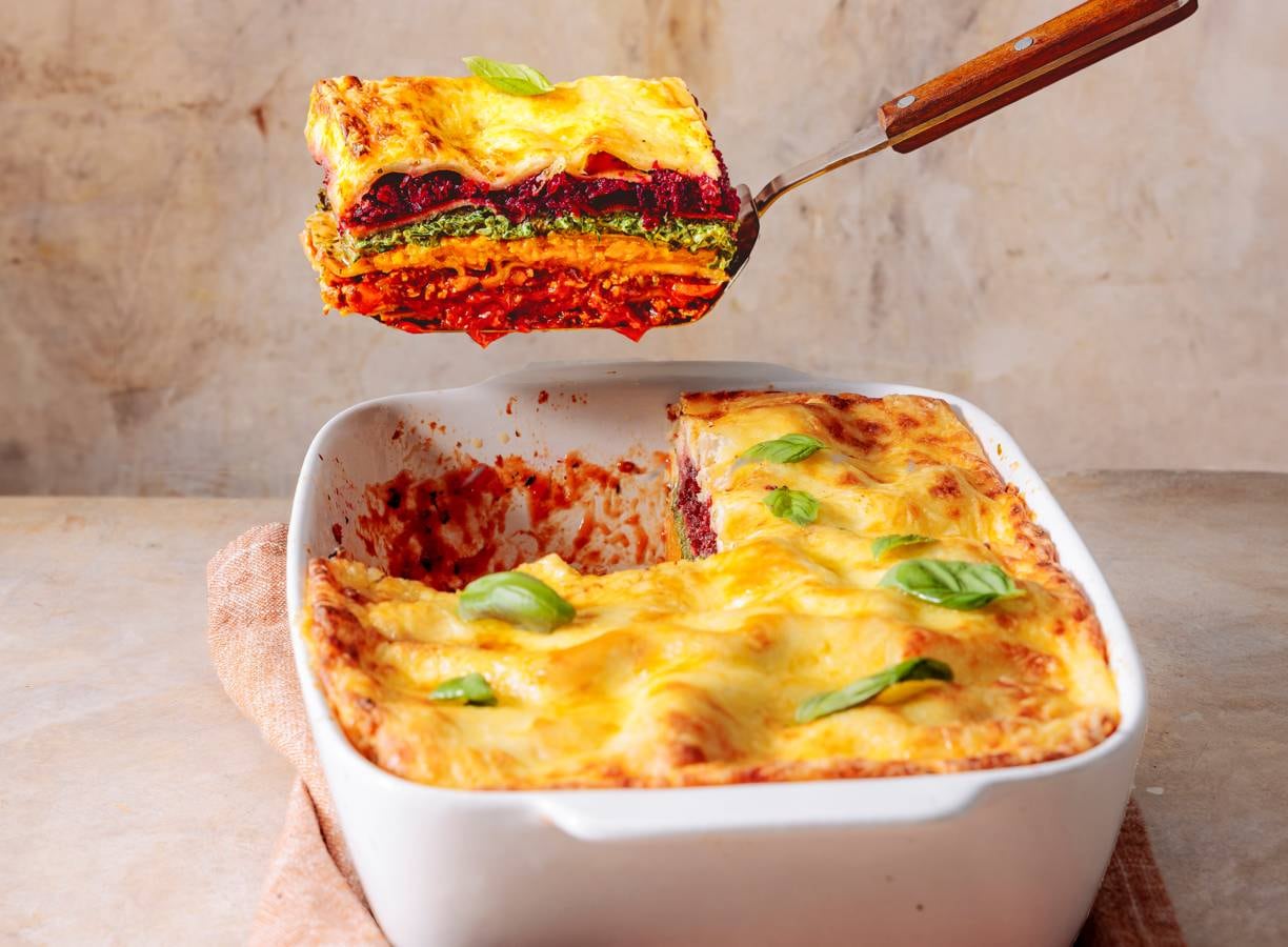 Met deze lasagne eet je alle kleuren van de regenboog! De kleurige laagjes zijn niet alleen een feest voor het oog, maar ook voor je buik. Mogen wij aanschuiven?