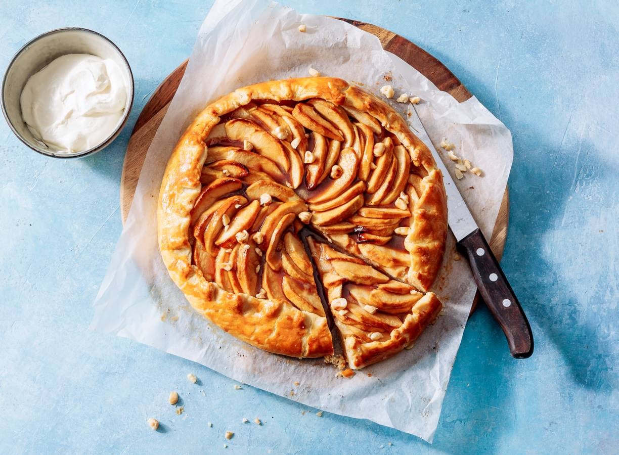 Appeltaart, maar nét even anders dan je misschien gewend bent. Namelijk als galette met spijs, vanille en hazelnoten.
