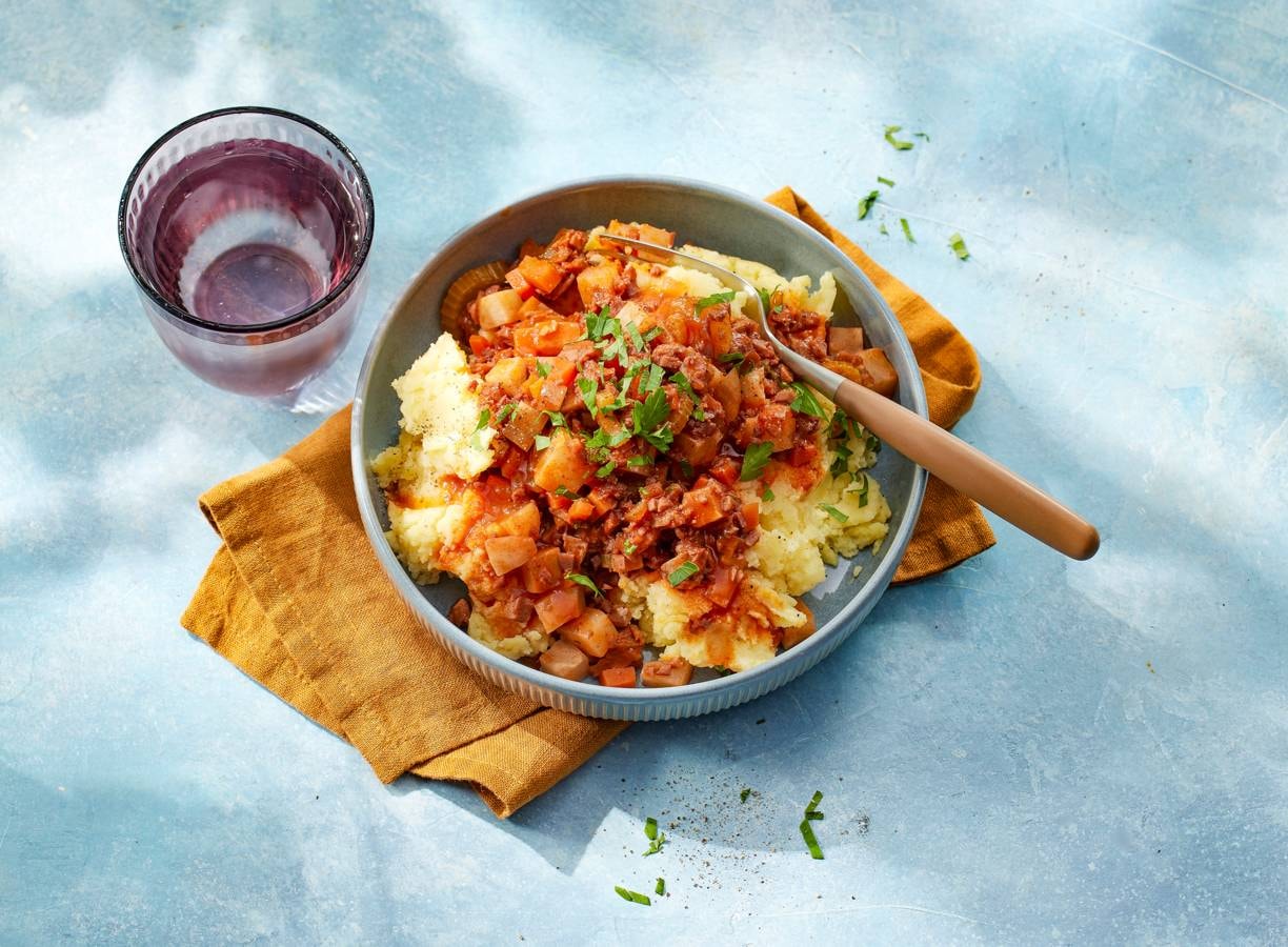 Pastinaakstoof met seitan en aardappelpuree