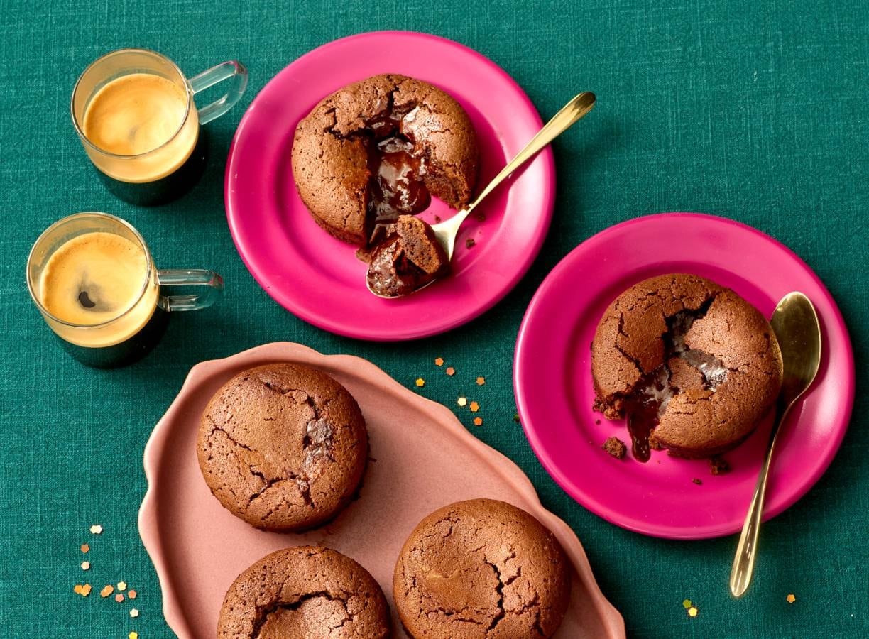 Verdeel het mengsel over de ramequins. Bak de ramequins 10 min. in de oven. Laat ze 5 min. afkoelen. Draai de ramequins om door er een bord bovenop te leggen en snel om te draaien. Serveer direct.