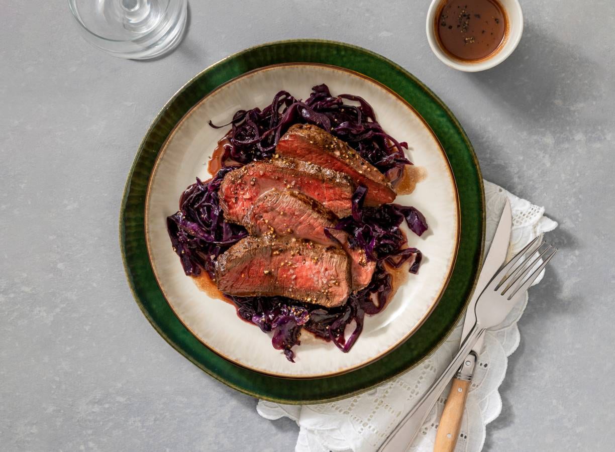 Gebraden hertenfilet met rodekool