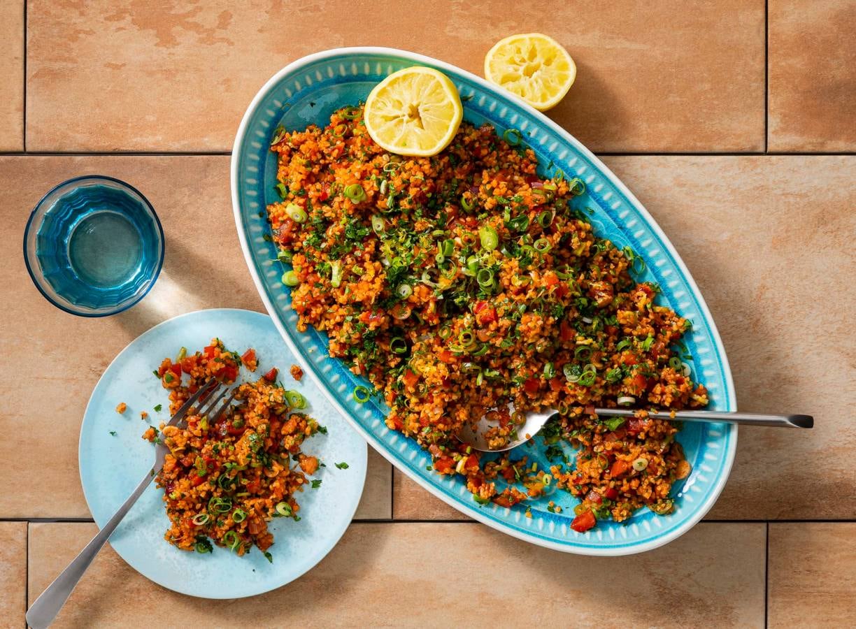 Kisir is een frisse Turkse salade met bulgur, tomaat, peterselie en granaatappel. Of je 'm nou inzet bij de mezze, als lichte lunch of een bijgerecht, hier ga je van smullen.