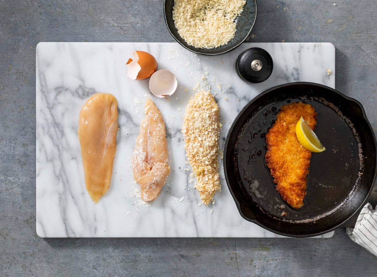 combinatietip: Lekker om na het bakken een partje citroen over de gepaneerde kip uit te knijpen.