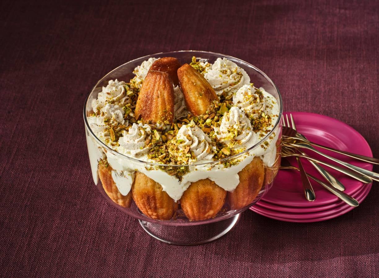 Dirty chai latte-tiramisutrifle met madeleines en pistache