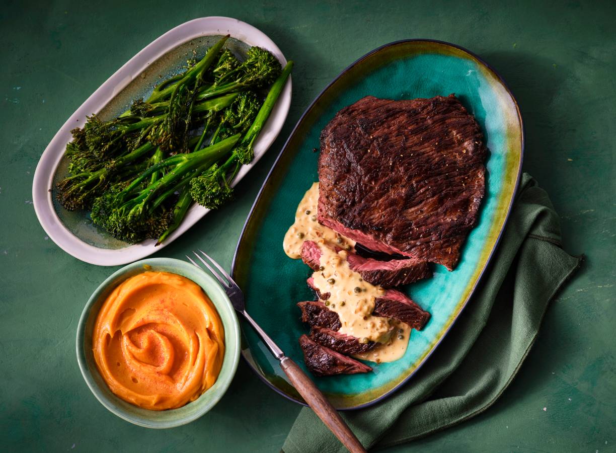 Steak en peperroomsaus zijn een onlosmakelijk verbonden smaakcombi. Dat passen we daarom dan ook toe op deze bavette, maar wel met wat flair: miso geeft namelijk een extra umami-smaak aan je pepersaus. Een heerlijke twist.