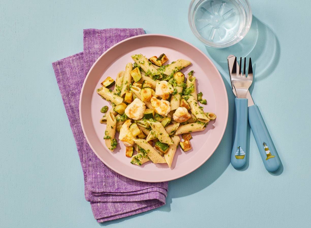 Volkorenpasta met courgettesaus en kipfilet van Kindergarden