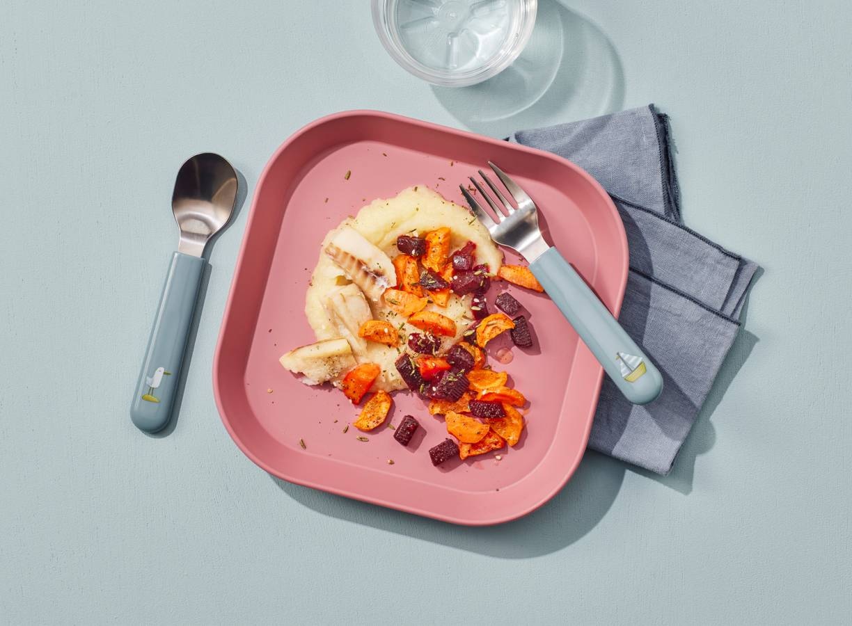 Pastinaakpuree met wortel, rode biet en witvis van Kindergarden