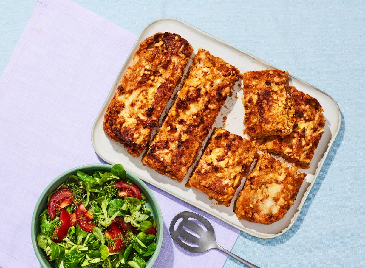 Rode linzen-cottagecheesetaart uit de airfryer
