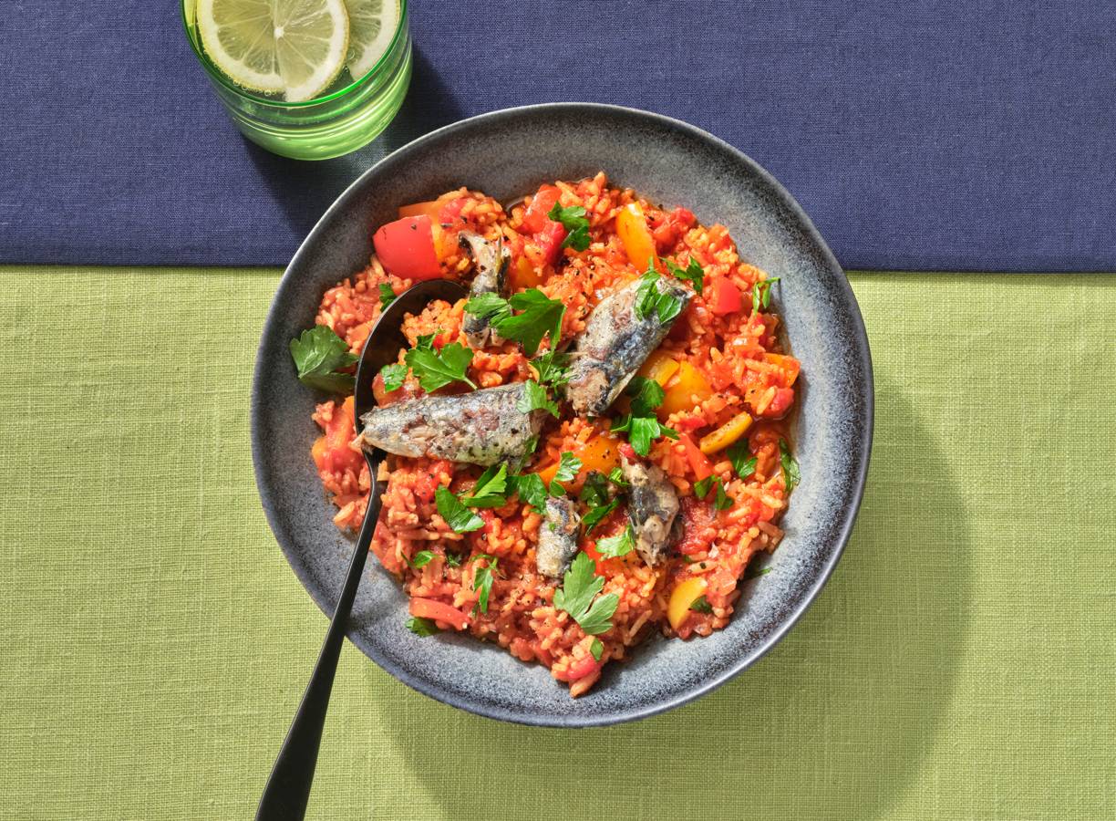 Tomatenrijst met paprika en sardines