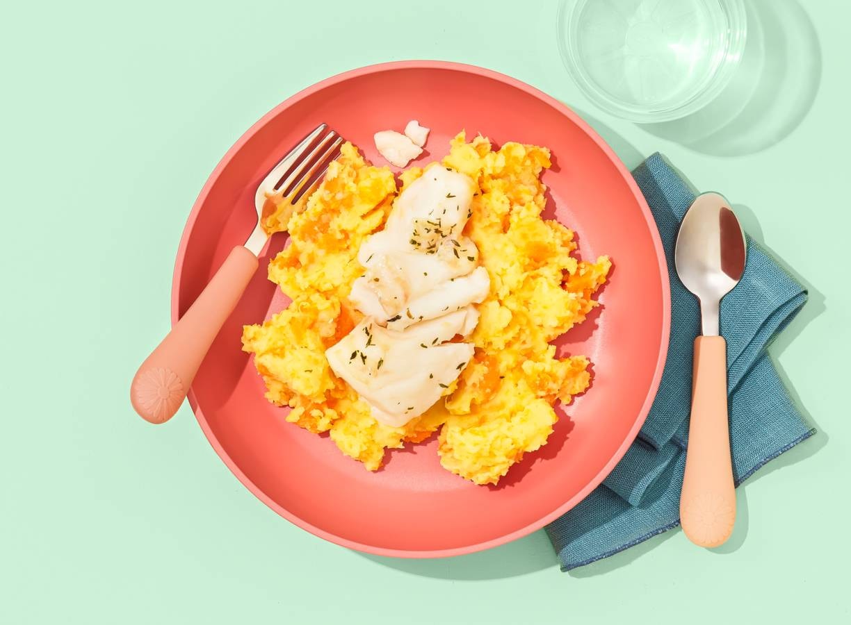 Koken met Kindergarden: Een smeuïge en voedzame hutspot van wortel, pastinaak en aardappel met zachte vis, mild van smaak en perfect voor kinderen. Geschikt voor het hele gezin!