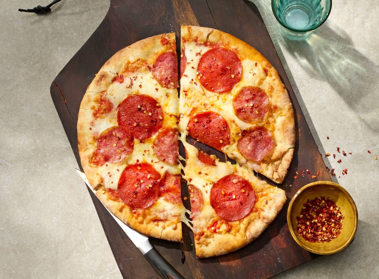 Pizza voor de pittige liefhebber! Met salami, pepperoni en chili vlokken heb je een gevaarlijk lekkere combinatie die je smaakpapillen laat dansen.