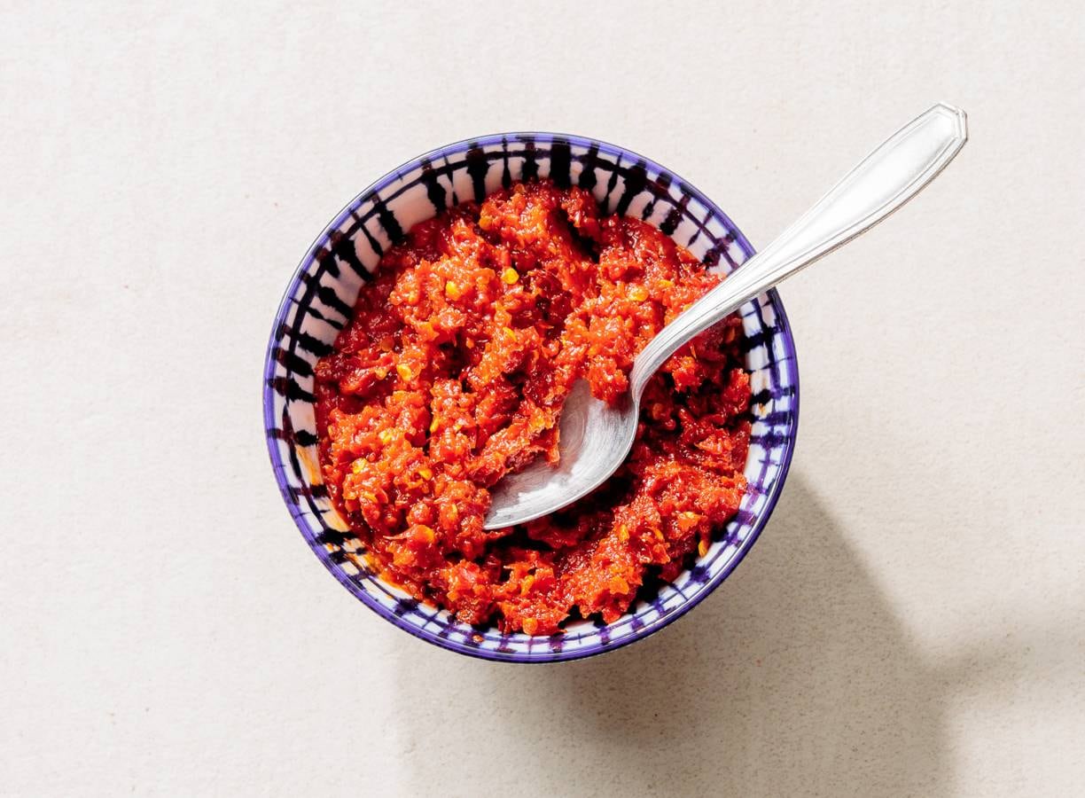 Sambal badjak: door dat deze gebakken met o.a. ui, krijgt de sambal een diepe smaak en is hij dankzij de laos aromatisch. Ook lekker: je hebt het in 10 minuten zelf gemaakt!