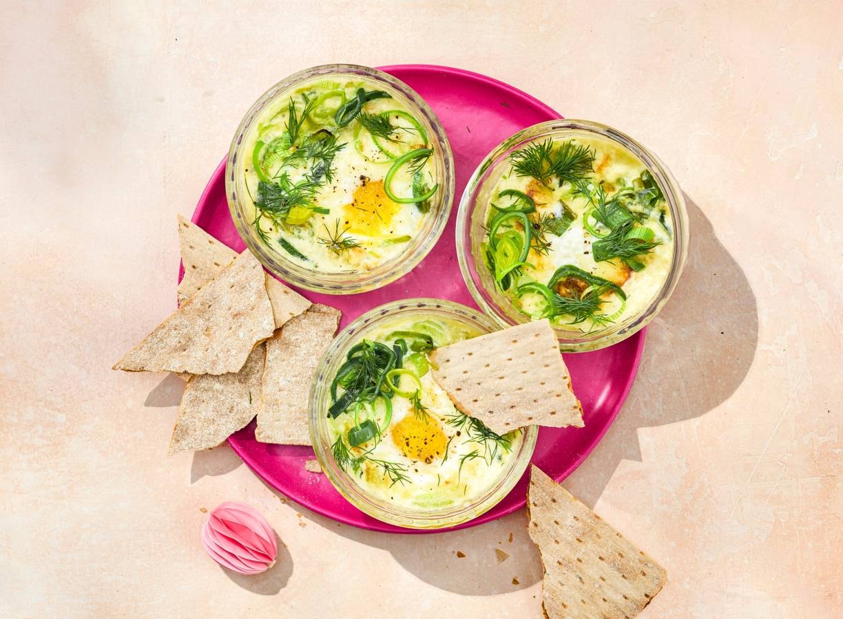 Baked gruyere eggs met rozemarijncrackers (advertorial)
