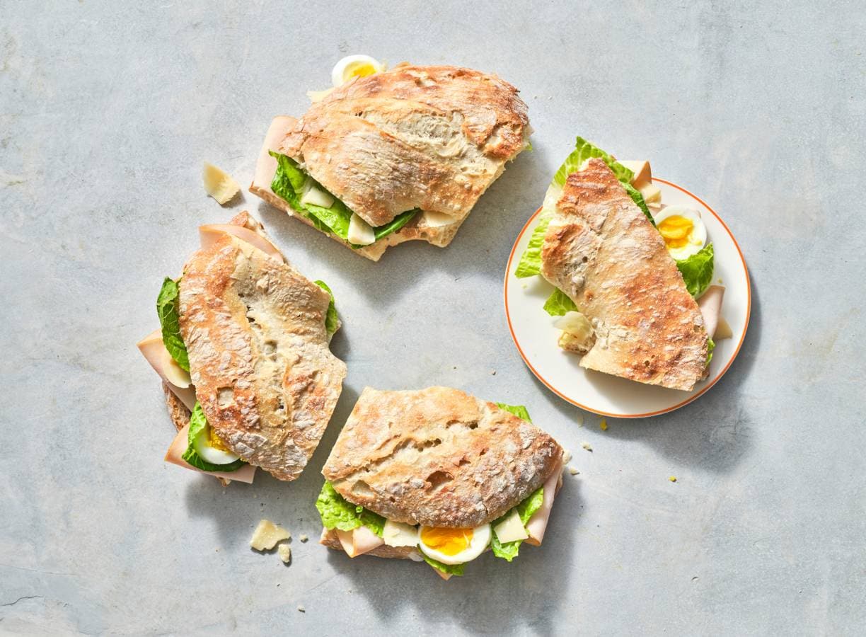 Snijd het brood horizontaal doormidden. Kook de eieren in 8 min hard, laat schrikken onder koud stromend water, pel en snijd in plakken.