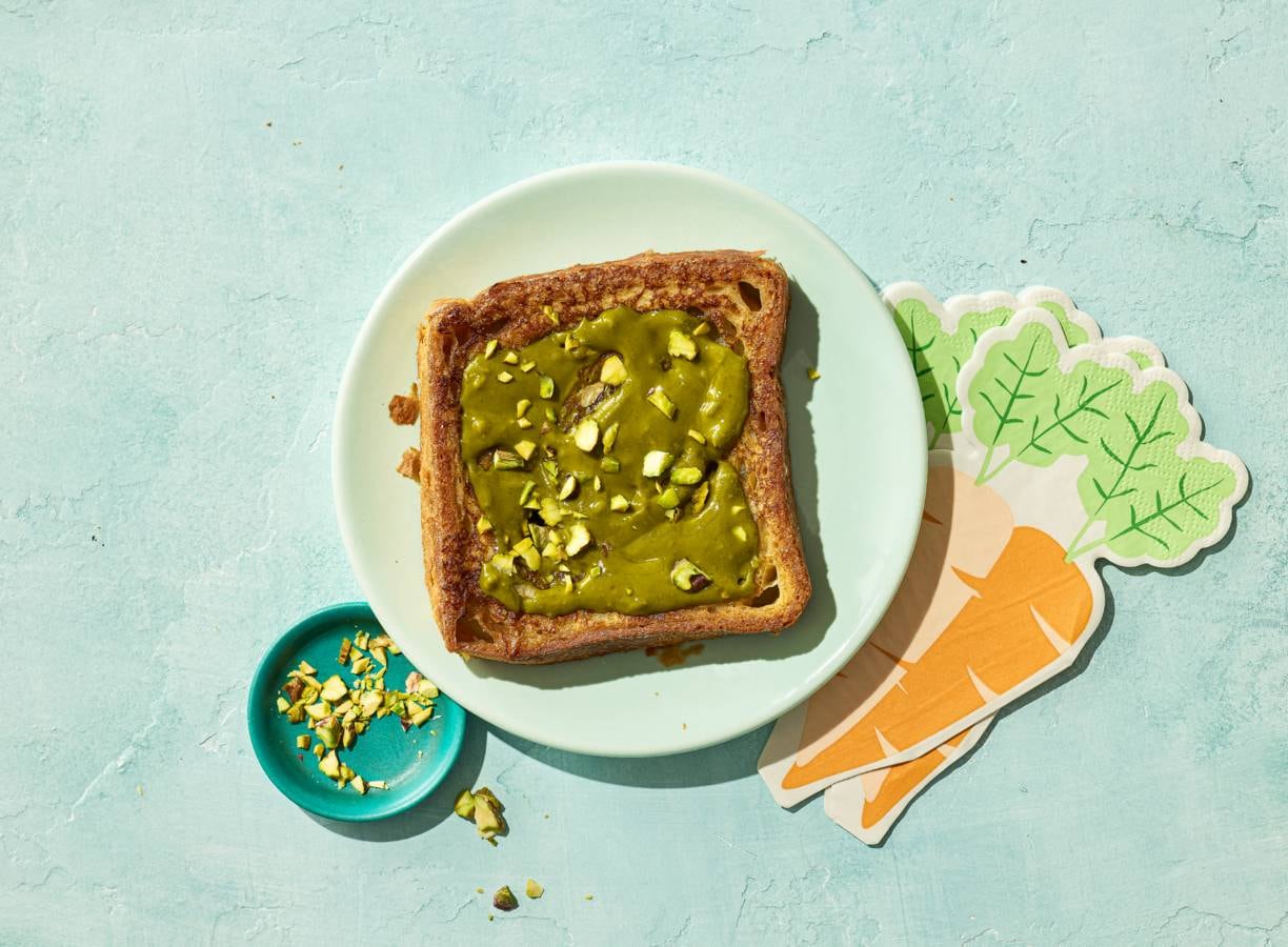 Croissantbrood-wentelteefje met pistachespread