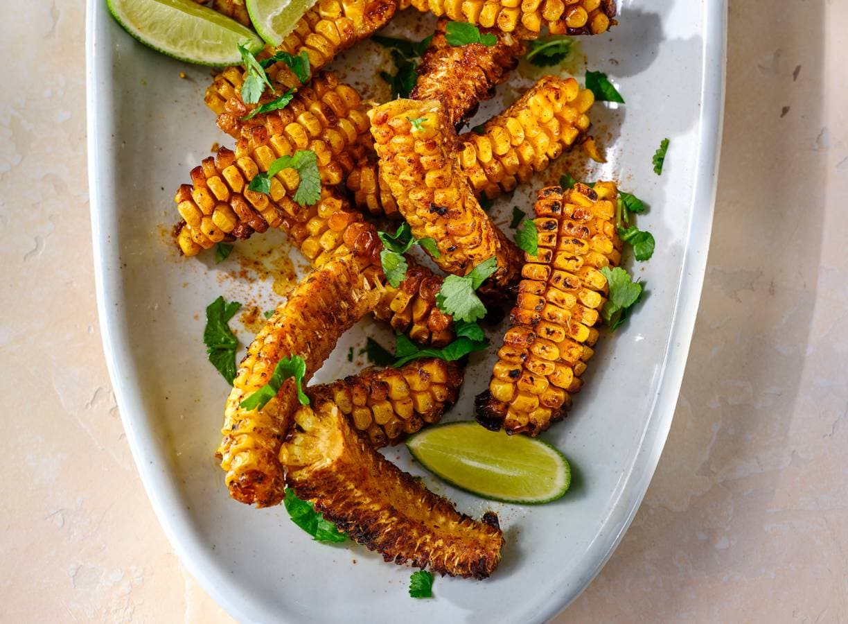 Deze rokerige ‘spareribs’ van maiskolven zijn hot. Snijd de kolven in vieren (ribs), kruid met je favoriete smaakmakers en gril op de barbecue. Heerlijk als BBQ-bijgerecht.