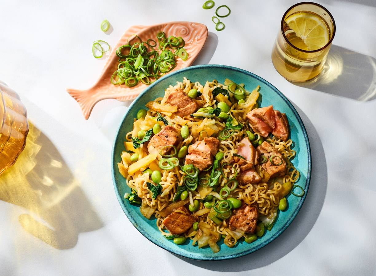 Noedelcravings? Deze woknoedels met zalm en sojaboontjes wil je! Heerlijk op smaak gebracht met gember, ketjap en sesamolie. En het fijne is: in 20 min. op tafel.