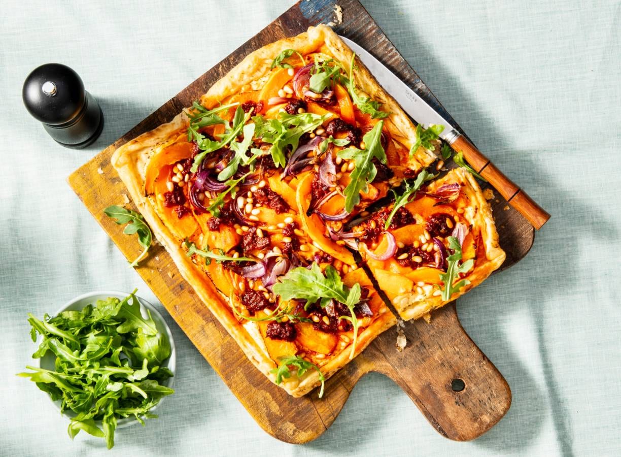 Plaattaart met geroosterde pompoen en 'nduja