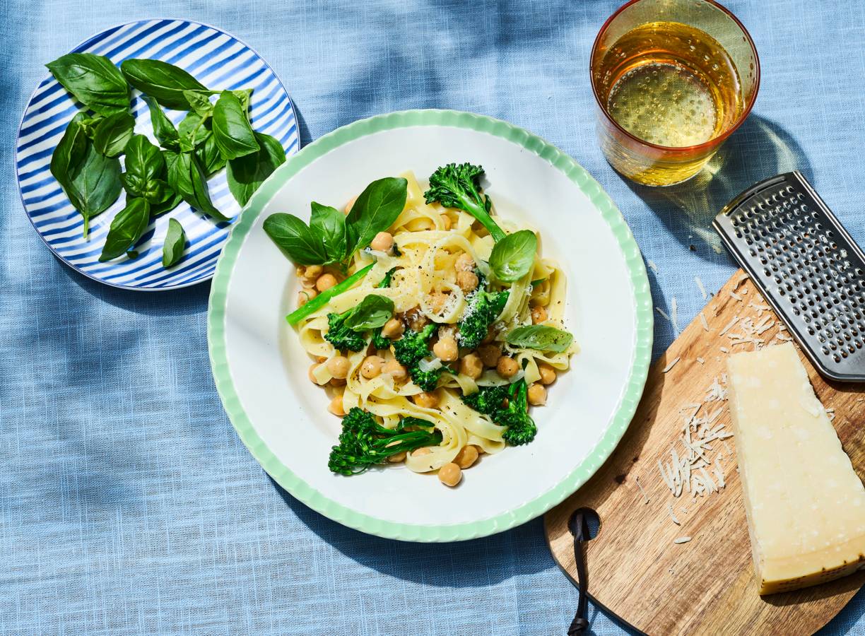 Wil je snel iets op tafel zetten én toch iets verrassends proberen? Tagliatelle, kikkererwten en bimi vormen een super(snel) trio.