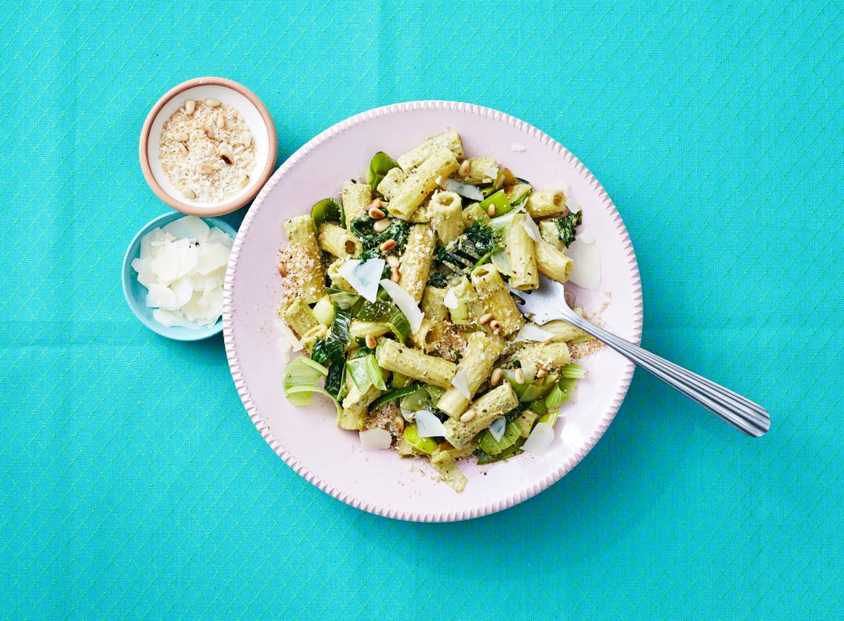 Spinazie en ricotta vormen een topduo. Combineer met pesto, prei en pijnboompitten en je tovert al helemaal een knaller van een pastagerecht op tafel.