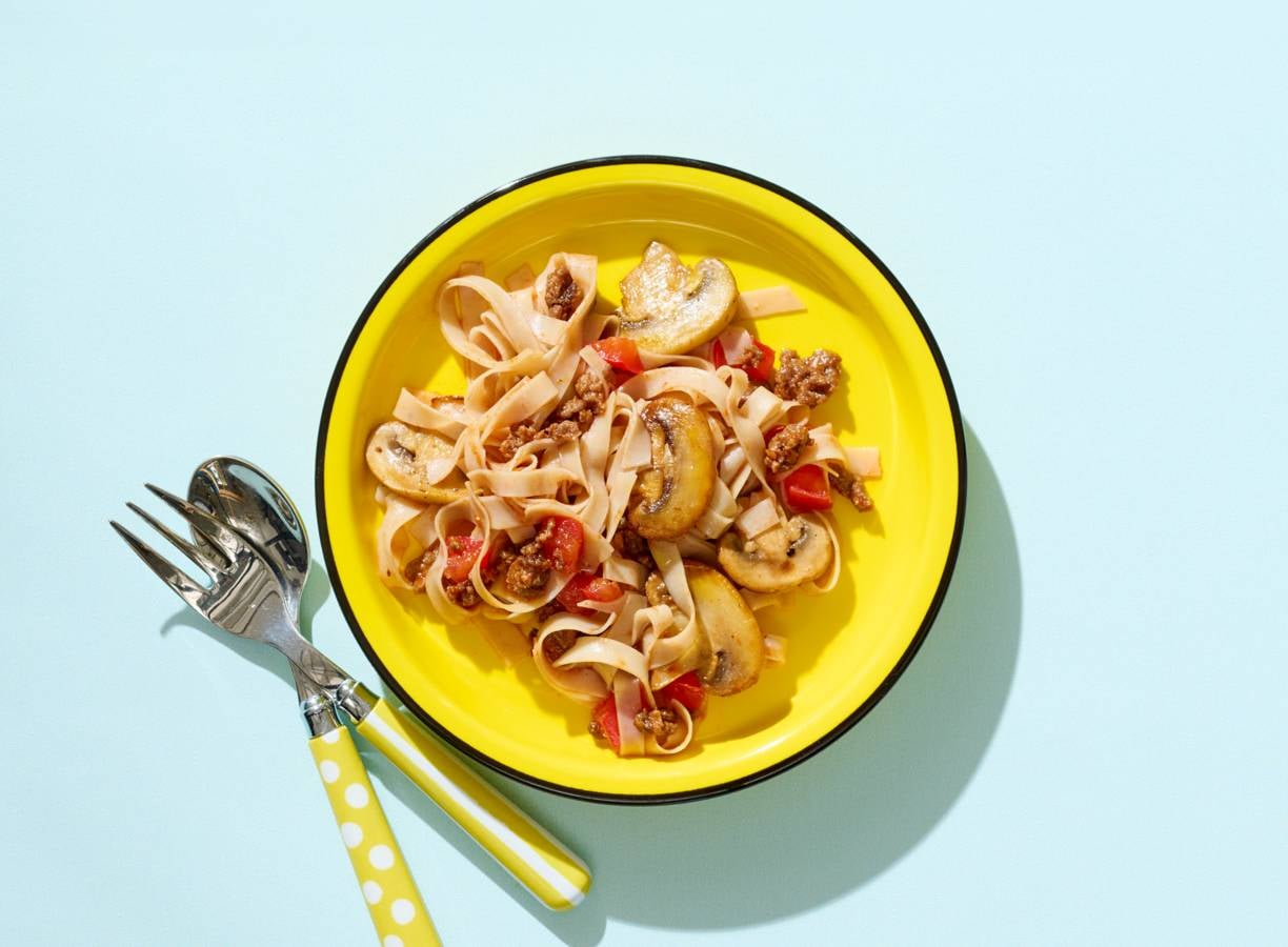 Dit kidsgerechtje is een mix van pasta met champignons en noedels in een. Een win-win als je kindje van beide houdt, toch?