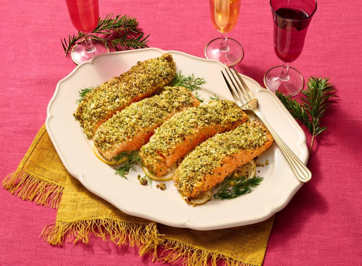 Zalm uit de oven is altijd een goed idee! Maar deze móét je een keer proberen: met een pistachekostje uit de oven. Dille, citroen en knoflook geven de vis nog een extra smaakkick.